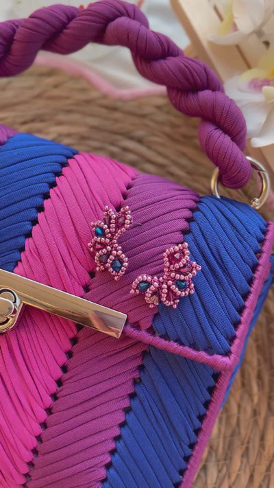 La nostra iconica borsa Alba, ispirata ai colori intensi e decisi dell’inverno, si unisce agli orecchini Vicky, realizzati nei toni perfettamente coordinati.